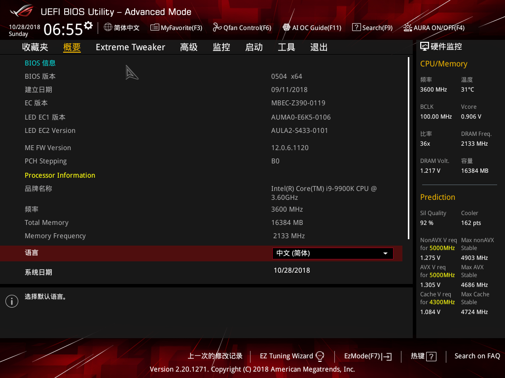 概要部分中可以查看主機配置的相關信息,包括處理器、內存以及BIOS版本等信息。