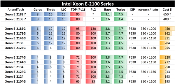 Anandtech的猜測(cè)是,ES1預(yù)計(jì)命名Xeon E-2138,ES2預(yù)計(jì)命名Xeon E-2188,價(jià)格分別是400美元和650美元左右。