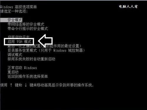 8、如果是重啟電腦之后顯示:超出工作頻率范圍的提示。那么第一時間長按開機鍵,關閉電腦,再按開機鍵,重新啟動,馬上按F8鍵,使用上下鍵選擇:啟用VGA模式(通常在Windows XP 操作系統的啟動管理菜單中才會有)即可。