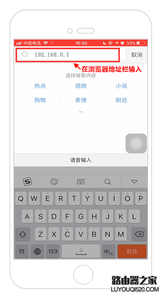 在路由器底部貼紙上查看路由器登錄IP地址,然后在電腦或手機(jī)上打開瀏覽器,在地址欄輸入192.168.0.1登錄管理頁面。