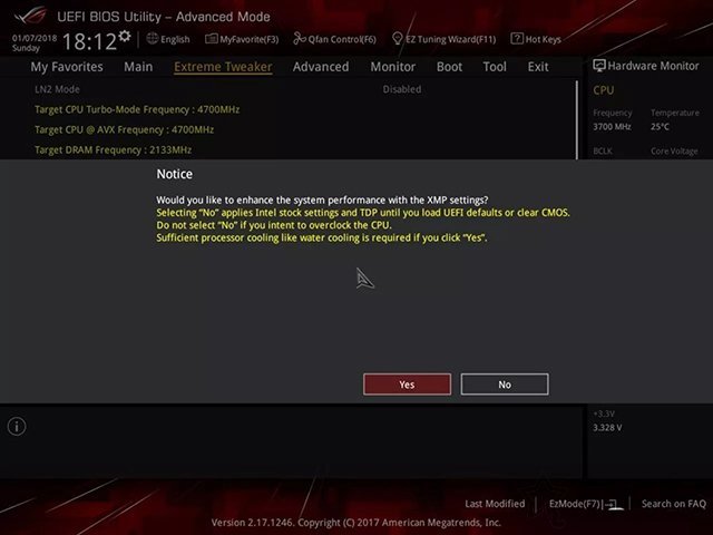 注:不同品牌的主板BIOS、不同版本的BIOS,那么設(shè)置也會有所不同,這里以華碩主板BIOS為例,其它BIOS設(shè)置大同小異,可以參考,找到XMP模式設(shè)置即可。