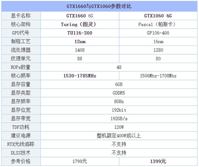 GTX1660和GTX1060參數(shù)對比