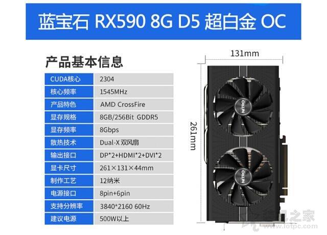 顯卡方面,藍寶石RX 590 8G D5 超白金 OC顯卡在配置參數上,基于12納米制程工藝,擁有2304個流處理器,配備了8GB GDDR5的顯存以及256bit的顯存位寬、8000MHz的顯存頻率和1545MHz的核心頻率,電源接口為8+6Pin,顯示輸出接口為1個DVI,2個HDMI以及2個DP,更好的滿足顯示器接口需求。RX590相比GTX1060顯卡領先了10%左右,所以對于1300元左右的價位,從性價比方面來看,還是值得選擇。