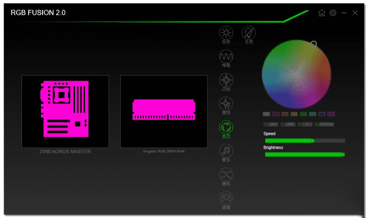 另外,本次測試平臺中的金士頓內(nèi)存也支持支持RGB Fusion燈光控制系統(tǒng),可以通過軟件設(shè)置為與主板聯(lián)動,實現(xiàn)統(tǒng)一的效果。