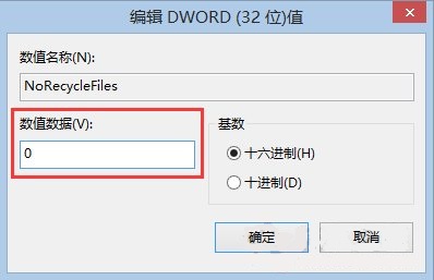 3、雙擊打開“NoRecycleFiles”,如果想要?jiǎng)h除文件后進(jìn)入回收站,那么數(shù)值數(shù)據(jù)設(shè)置為0,如果想要徹底刪除文件而不進(jìn)入回收站,那么直接將數(shù)值數(shù)據(jù)設(shè)置為1,最后重新啟動(dòng)電腦即可。