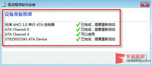 安裝完磁盤驅動后,系統會提示正在安裝設備驅動,大約過1分鐘左右,會彈出“設備準備就緒”的提示窗口(圖4),點擊“關閉”按鈕重新啟動系統即可。
