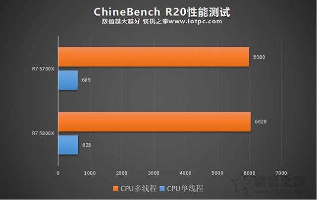 而在ChineBench R20渲染測試中,R7 5700X相比R7 5800X在單核性能落后了2%,多線程性能落后了不足1%,性能差距也不大。