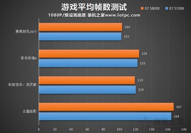 為了反映CPU的真實性能,盡量減少顯卡上的瓶頸,測試全部在1080P分辨率進行的,但是畫質依然是最高畫質,不開光追,不開PBO。游戲選用的分別是《賽博朋克2077》、《孤島驚魂6》、《刺客信條:英靈殿》以及《古墓麗影》,來看看平均幀數表現吧。