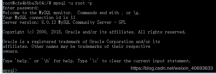 進入MySQl容器:使用的docker exec命令,-it是參數(shù),bash表示創(chuàng)建一個交互界面