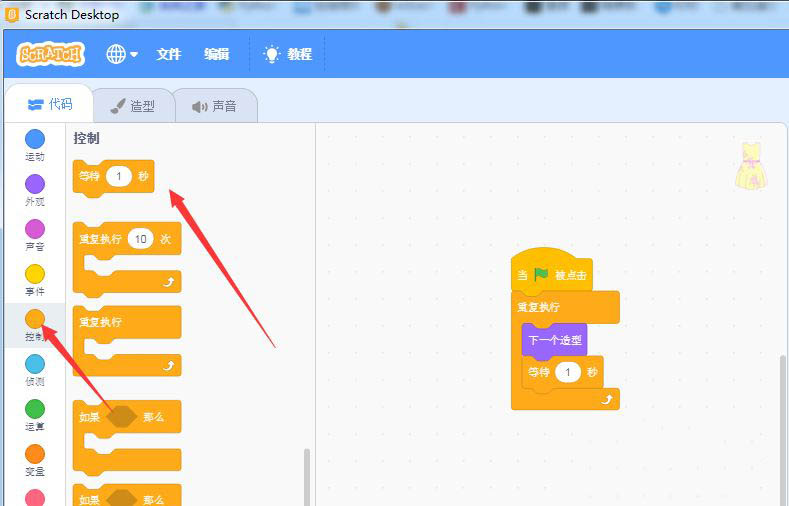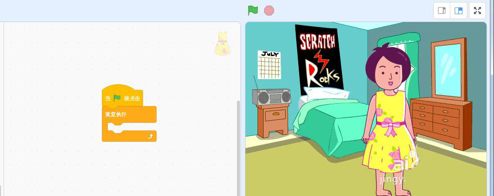 添加控制里重復執行到代碼區。讓女孩不斷變換衣服,