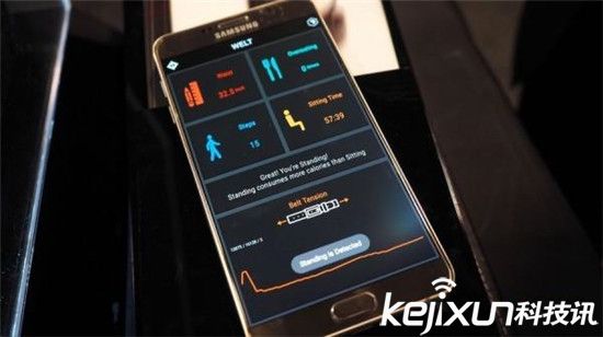 “WELT”跟普通的皮帶長得非常像,不過它的價值體現在內置的傳感器,它能夠與用戶智能手機搭配使用,告訴用戶一些有用信息,比如你已經坐了多久,你今天已經行走了多少步數。