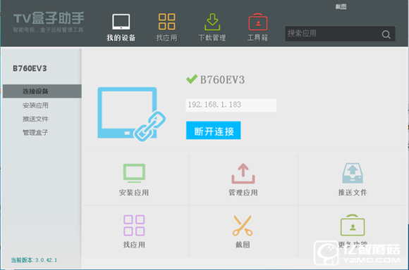 六、打開TV盒子助手,輸入對應的盒子IP地址,連接