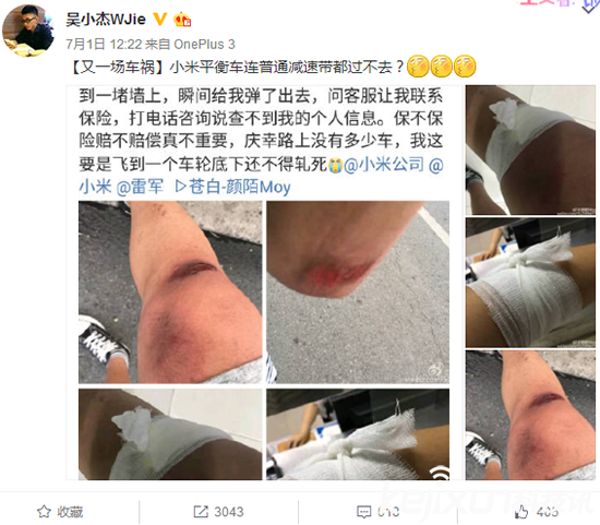 7月4日消息:小米平衡車再出事故,這次又是誰傷了?小米平衡車自發布以來就問題不斷,并且自從大V王奔宏送進醫院后更是被廣泛關注,小米平衡車的安全問題也一再的被提上日程,但不幸的是小米平衡車與近日再次發生一起事故,雖然沒有住進醫院但是傷勢也是蠻嚇人的!