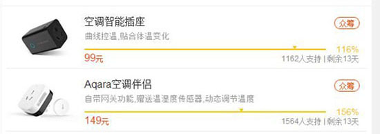 這種空調(diào)伴侶的主要的功能是你能夠遠(yuǎn)程操控空調(diào),同時可以在手機(jī)上查看到例如功率、耗電等參數(shù)。從目前的眾籌情況來看,這兩款智能硬件產(chǎn)品被米粉廣泛關(guān)注,從小米智能家庭眾籌頁面我們可以看到,目前兩款產(chǎn)品都已經(jīng)眾籌成功。