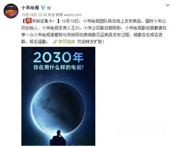 最近,小米電視官方微博透露將在10月18日首發(fā)一款新品,提出“2030年,你在用什么樣的電視”,暗示這款新品設(shè)計(jì)超前,功能設(shè)計(jì)要遠(yuǎn)遠(yuǎn)領(lǐng)先...