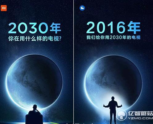 與此同時,互聯網電視新秀微鯨也有所動靜,在小米電視新品揭曉的前一天,其“微鯨投影”的微信公眾賬號發布了一篇名為《10月20日,給你用2030年的電視》的文章,“2016年,我們給你用2030年的電視”,并且其海報與小米電視預熱海報風格相同,極度類似,不免讓人懷疑有直指小米的意味。兩個互聯網電視品牌接連走未來懸疑路線,瞄準2030年,那么小米和微鯨的新品電視究竟是什么?
