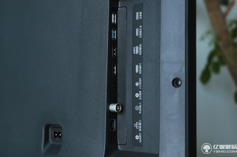 機身后部采用無塵納米涂層,上部一排散熱孔為內陷式設計,同樣具備一定的防塵作用,后背的右邊設有接口和操作按鍵,接口類型和數量并不算多,因此沒有采用很多電視的L型設計,不過日常使用也是足夠了,而且HMDI和USB都配備了最新標準的接口。