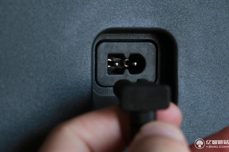 操作按鍵為十字鍵盤設計,離邊框較近,很方面就能找到位置進行盲操,電源接口為雙針口,采用防插反設計,電源線插頭采用超迷你圓頭設計,不會妨礙到旁邊的插孔,質量也不錯。
