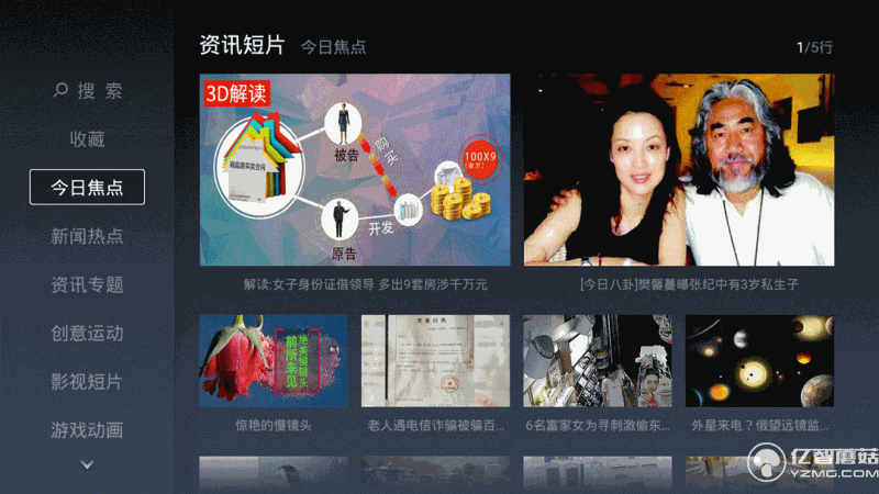 電視自帶的影視資源量非常大,通過系統自帶的推薦可以很方便找到最新的熱門影視,也可以通過明星搜索資源,或者進入電影、電視劇、資訊、綜藝等對應分類板塊查找,每一個板塊都內置了多種細分類別,用戶能夠快速找到想看的資源。