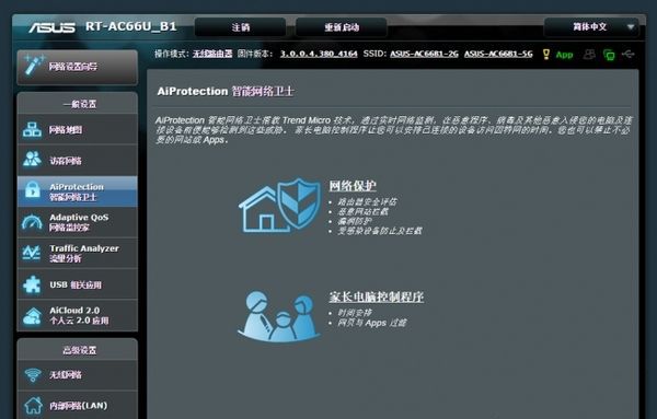 AiProtection 智能網絡衛士功能分為兩部分,網絡安全和家長控制。由于華碩和趨勢科技進行了合作,可以實時網絡監測,在惡意程序、病毒及其他惡意入侵電腦及連接設備前便能夠檢測到這些威脅,所以華碩路由的網絡安全防護能力很強。
