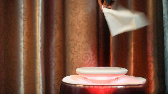 如果沒有額外需求,基本上只用按一下開關就不用管了,它會自動去調整和優化。打開之后明顯能感覺到后面的窗簾被風吹得呼呼的,拿張紙在上面就能感受到風力的強勁。在自動模式下這個風力是根據目前空氣質量來調整的,如果像我家一樣處于紅色重度污染,就會聽到呼呼的大風幫我優化空氣,隨著逐漸優化風也會慢慢變小。