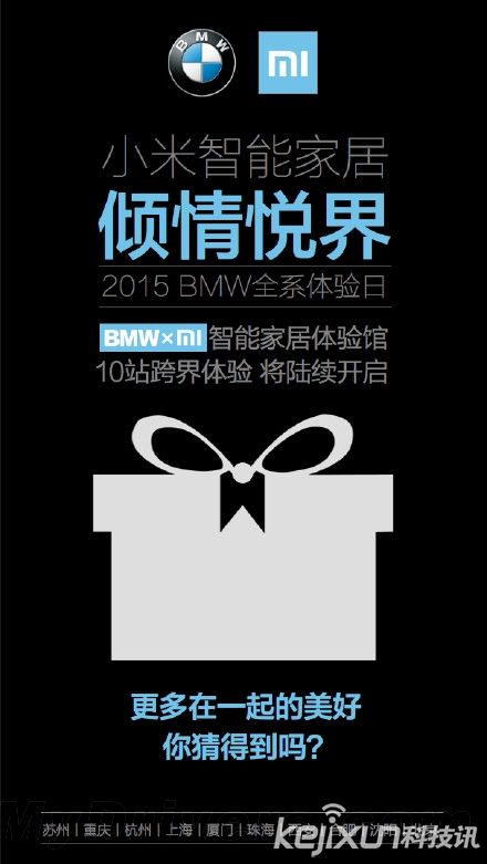小米公司向來是不出手則已,一出手就嚇你一跳。就在今天,小米宣布牽手寶馬公司,將共同打造完美智能生活。即日起將在全國10個城市開放2015 BMW全系體驗日,用戶在試駕全系車型的同時,還可以在體驗館試玩小米智能家居產品。
