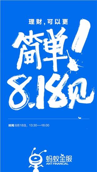 近日,螞蟻金服向媒體發出邀請函,宣布將在8月18日舉辦發布會。這張邀請函并未透露發布會的具體內容,但仍然能看出本次發布的內容將和理財內容有關。螞蟻金服方面拒絕透露發布會的任何細節問題。