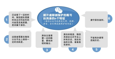 目前為保護原創(chuàng),微信公眾平臺已經開通了上線的原創(chuàng)聲明功能,抄襲舉報機制,另外符合條件的賬號將可以獲得集原創(chuàng)聲明、贊賞、評論、頁面模板的組合功能。