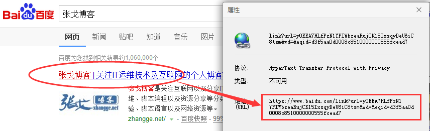也就是說,我在百度搜索張戈博客,那么頁面地址應該是: