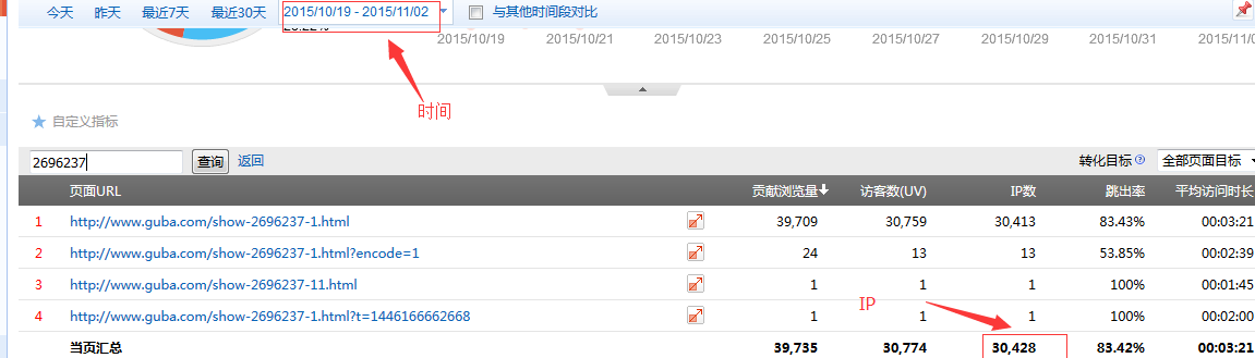 10月19日下午到11月2日上午實際上是14天多點共引流30428個IP。