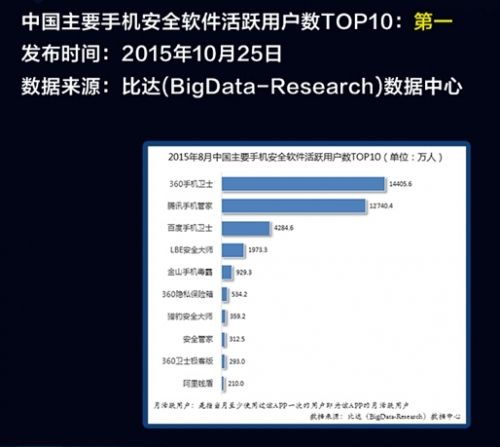 月活躍用戶數超1.4億 360手機衛士活躍度排名第一