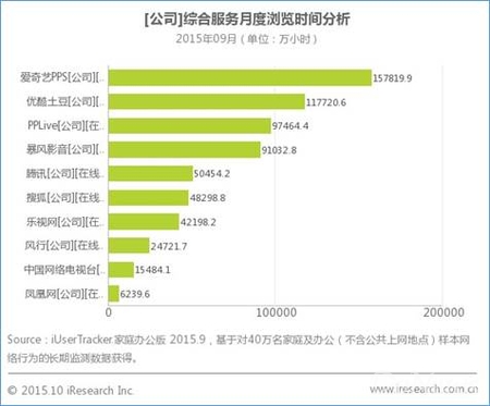 視頻客戶端的強力表現帶動了相對平穩的PC視頻格局進一步升級:2015年9月,愛奇藝的日均用戶量超過第二名近千萬人,月度觀看時長超過第二名4億小時,領先超過34%。PC視頻行業格局呈現出更明顯的階梯狀分布。