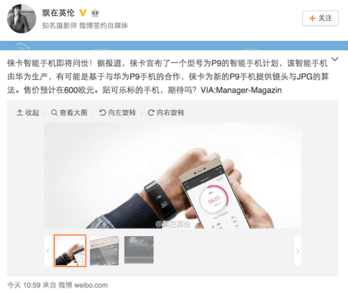 新聞通稿里沒有披露合作細節(jié),但根據(jù)@飄在英倫(宋聚強)在微博上的爆料,徠卡可能會在華為新旗艦P9的基礎(chǔ)上推出一個特別版。貼有小紅點的華為手機,可能真的要來了。
