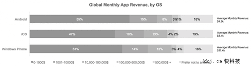 那不妨讓我們看看在火爆的智能手機圈,幾大平臺的開發(fā)者們收入如何。
