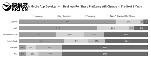 PS:調(diào)查樣本中,21%從事WindowsPhone開發(fā),57%為iOS,86%為Android。