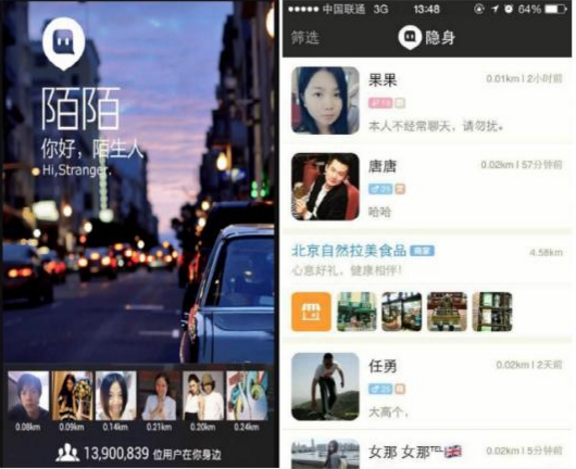 作為一款基于地理位置的移動社交工具,陌陌可以讓我們認識周圍任意范圍內的陌生人。那么,在眾多陌生人交友app中,陌陌為何能脫穎而出?陌陌一直以LBS作為功能項的核心,堅持移動語音聊天工具+定位查找陌生人,將“以距離迎合心理”這一核心做到極致,勇敢地做邂逅陌生人的聊天工具。任何人都可以通過陌陌隨意地與身邊人交流,這大大降低了社交門檻,也使得陌陌的用戶量劇增。而陌陌也因此獲得阿里的投資青睞,在短短的4年時間內成功上市。