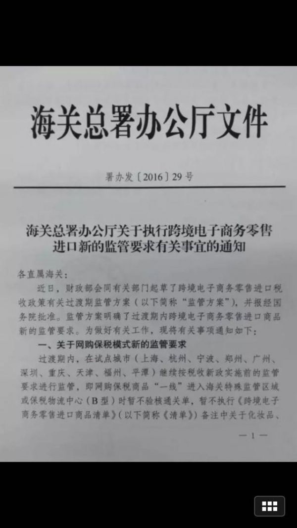 5月25日下午消息,海關總署昨日發布了關于執行跨境電商電子商務零售進口新的監管要求通知,通知稱“過渡期間,在試點城市繼續按稅收新政實施前的監管要求進行監管”。