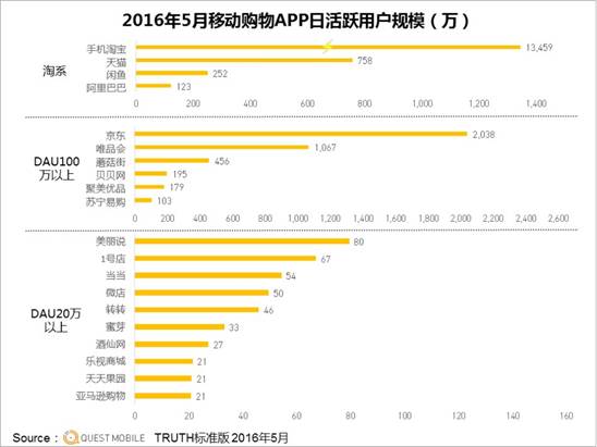 近日,國內知名大數據研究公司 QuestMobile發布了《2016中國移動電商專題研究報告》,報告從用戶覆蓋率、活躍度、粘性等核心數據維度,對中國移動電商領域的眾多電商平臺的經營和發展狀況進行了客觀分析與評估。