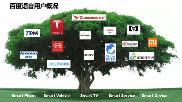 目前,使用百度語(yǔ)音的App數(shù)量8萬(wàn)+,每天語(yǔ)音識(shí)別請(qǐng)求量1億+,每天語(yǔ)音合成請(qǐng)求量2.5億+。重量級(jí)行業(yè)用戶包括智能手機(jī)領(lǐng)域的聯(lián)想、中興、魅族等;智能家居領(lǐng)域的聯(lián)想、康佳、SONY等;汽車行業(yè)的特斯拉、比亞迪等;智能設(shè)備領(lǐng)域的惠普、三諾、艾米通訊等。