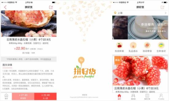 從模式上看,“拼好貨”是一家從生鮮品類切入的社交電商。用戶可以在拼好貨的平臺上,發(fā)起價格更加實惠的水果拼單,通過微信朋友圈等社交媒體邀請好友參團(tuán),只有達(dá)到規(guī)定人數(shù)時拼單才會生效,人數(shù)不足則將自動退款。
