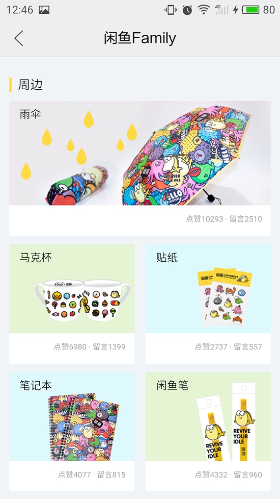 今年起,不少用戶發現,打開自己閑魚手機端,點開“我的”,便看到一行名為“閑魚family”的菜單欄,里面便是包含壁紙、馬克杯、貼紙等在內的閑魚漫畫周邊。雖未正式開售,都還打著“敬請期待”的字樣,但仍獲得了用戶的大量關注,不少人留言“杯子好可愛。”“給我給我!”