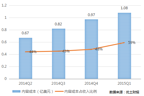 (合并后的優土,其內容成本占收入的比例依舊逐步走高)