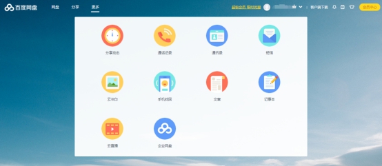 對于功能方面,小編不得不由衷的為百度網盤的升級點一個贊。順便說一句,“分享動態”改位置啦,之前網頁版分享動態、通訊錄、通話記錄、短信等小功能都被整合到了“更多”一欄中,全新界面改變了以往散亂布局的狀況,布局扁平化,一目了然。點擊進入“更多”后,你就會發現,功能清晰的圖標設計、明快的色彩搭配,給人一種舒服清新的即視感。