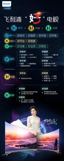 電視行業早已是競爭慘烈的“紅海”市場,各家紛紛以價格戰作為吸引消費者眼球的手段,以新興的互聯網品牌尤甚。其實對于消費者來說,人們并不是不愿意花錢買電視,而是更愿意花錢買更高品質電視機。對于被譽為外資電視品牌中“一枝獨秀”的飛利浦來說,為廣大消費者提供更優質的生活是125年歷史一貫的初衷,于是提出好電視的三好標準——“好硬件+好內容+好品牌”。