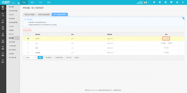 大商創(chuàng)目前支持微信端,qq,以及支付寶的第三方登錄,設(shè)置也非常簡單: