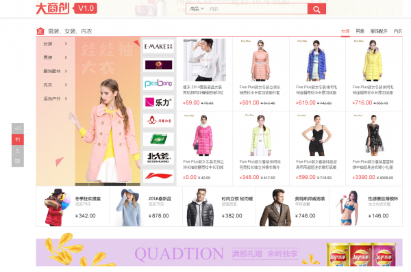 首先是大商創(chuàng),整個首頁還是非常大氣的,頁面效果,細(xì)節(jié)做的比較好,比如分類頁的屬性篩選彈出效果,購物流程,分類頁等等,都還算不錯。