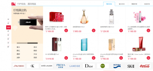 樓層來看,大商創(chuàng)每個樓層比較豐富,有品牌,廣告,和商品組合,看起來大氣: