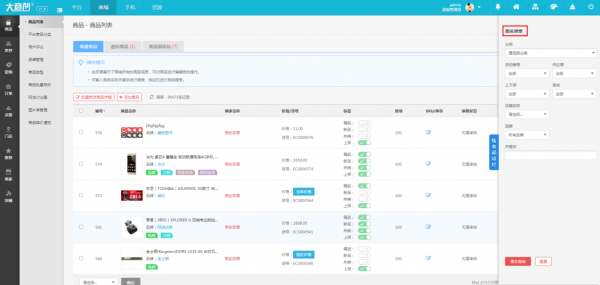 后臺的頁面操作體驗舒適度,大商創(chuàng)也更好一些,比如商品高級搜索模塊