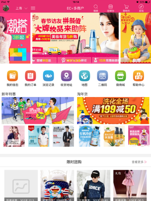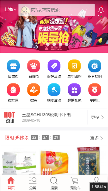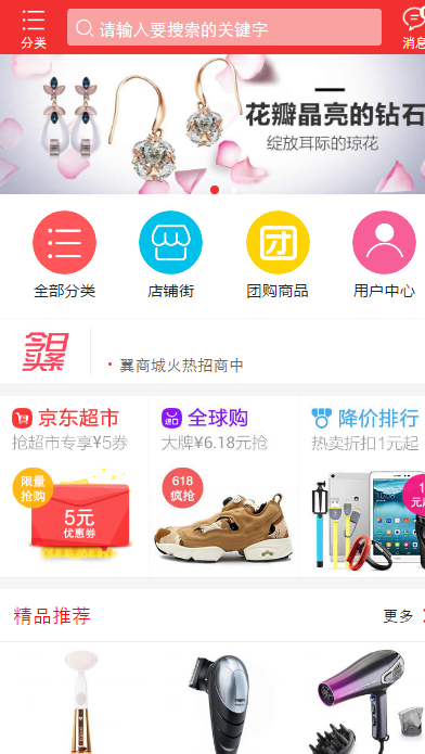 而小京東的手機端就相對而言比較吃虧,因為pc功能不如大商創(chuàng),因此可能就稍顯簡單,只有通用的團購,等促銷模塊: