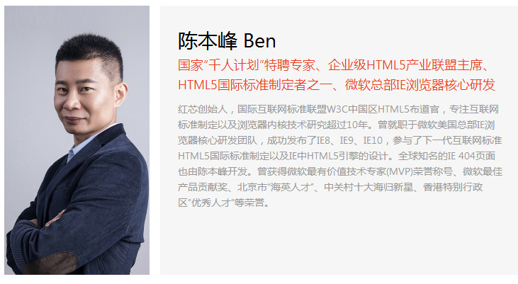 官網對創始人的介紹中,稱其曾是微軟總部 IE 瀏覽器的核心研發人員。